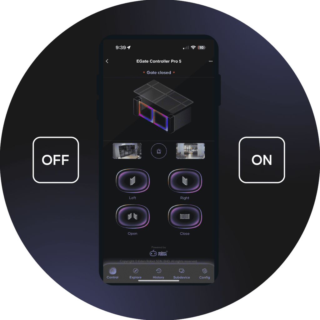 Now you can control your gate from the app and let friends, family, and service professionals in from anywhere, whether you’re home or away. Plus, connect with an optional Eden Robot Video Doorbell or Security Camera to see, hear, and speak to visitors from Live View.